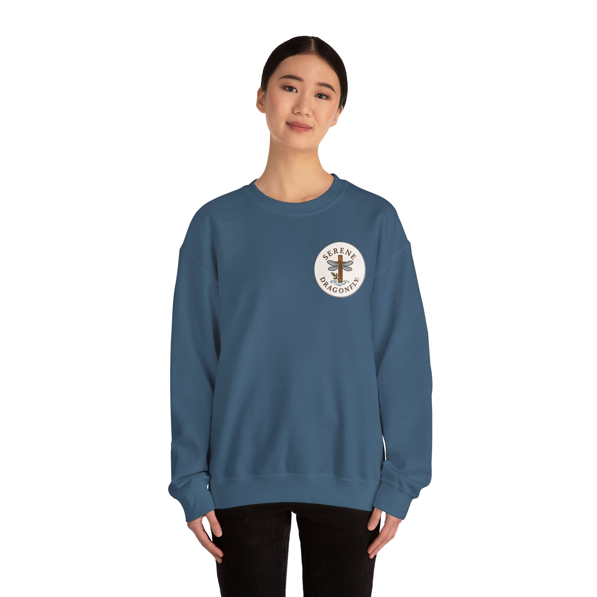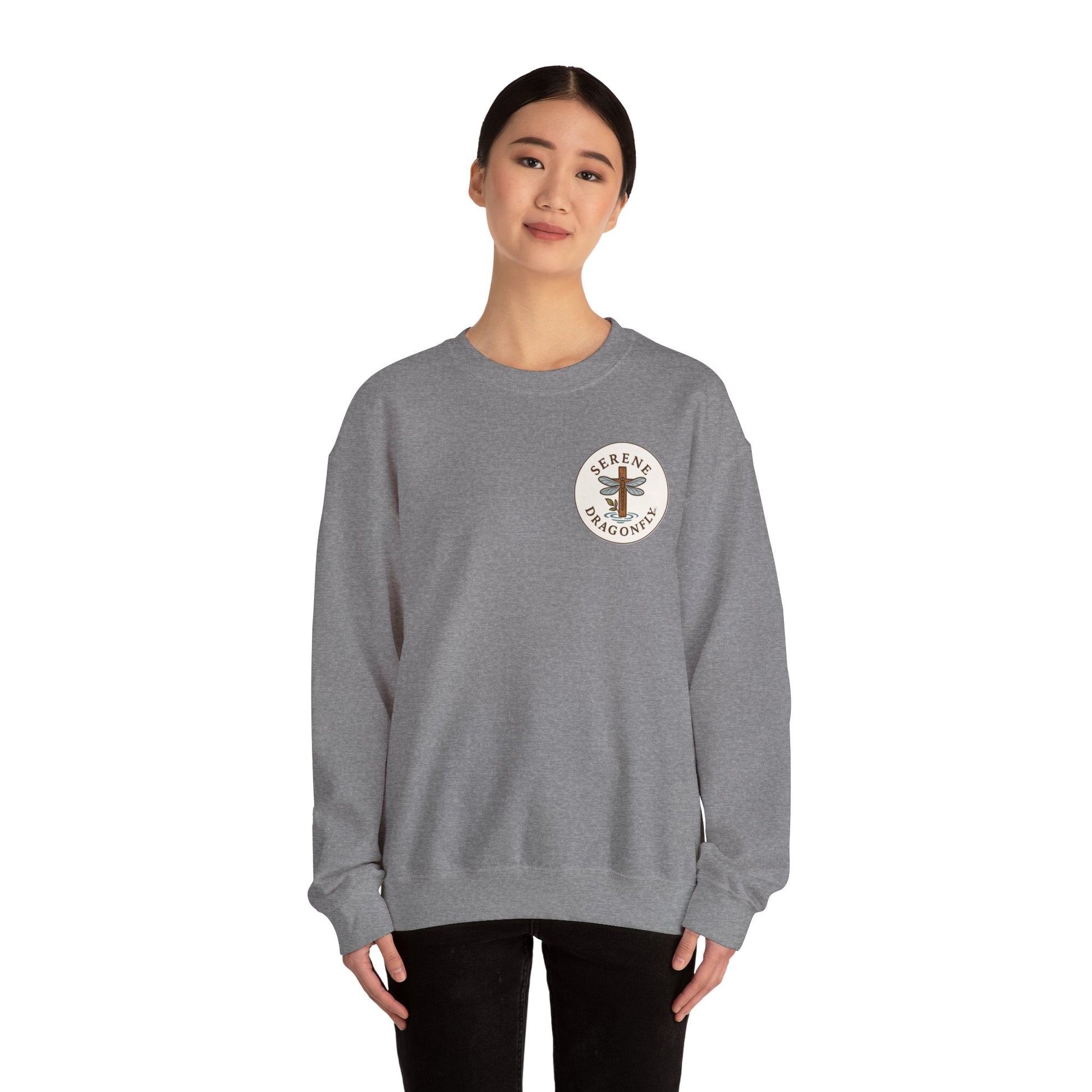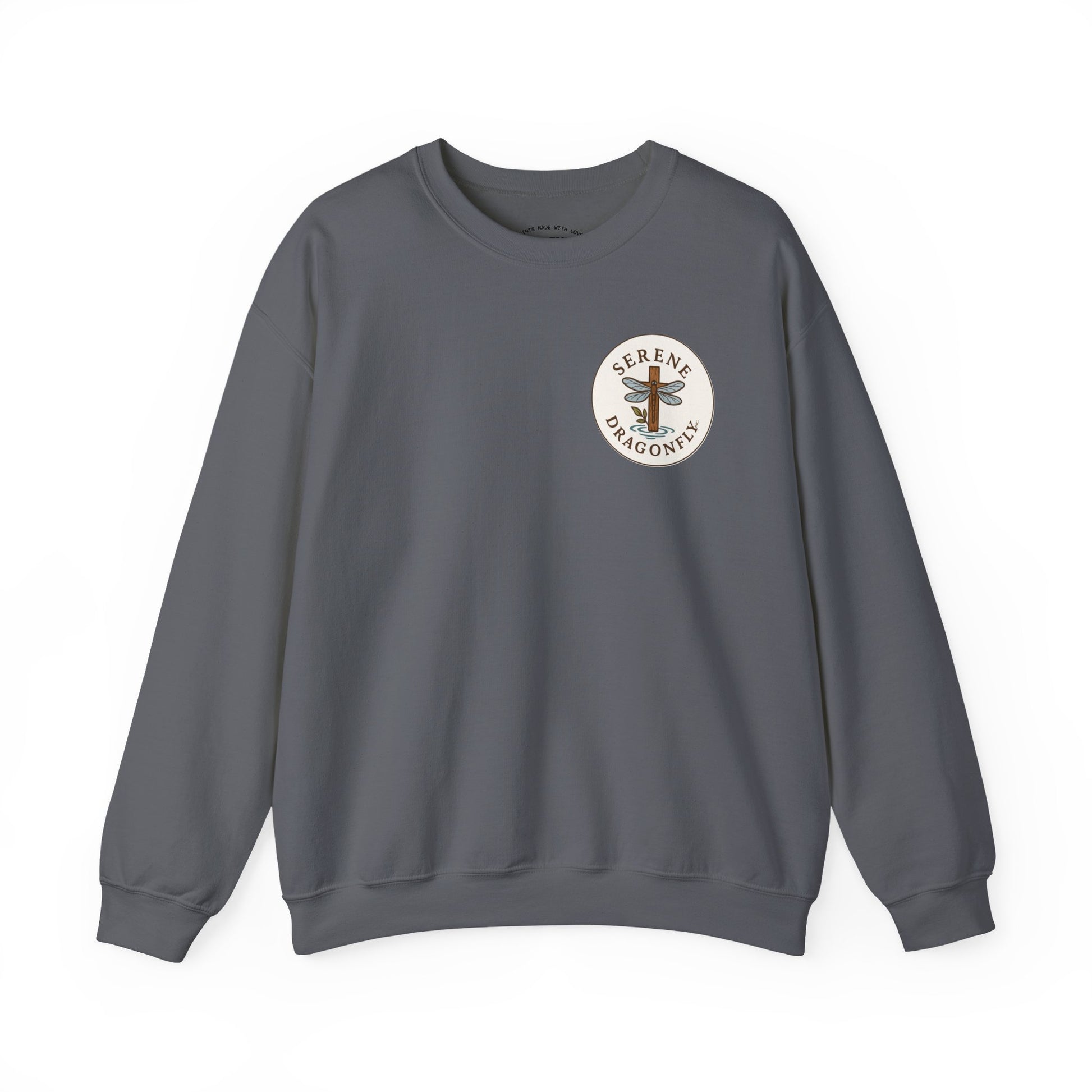 This cozy crew sweatshirt carries a quiet, reflective energy — soft white fabric, roomy classic fit, and a serene back print of a sunrise over still waters. Wear it on slow mornings, after chapel, or layered for evening walks when you want comfort that echoes a moment of pause. The image and verse on the back invite breath and calm; the plain front keeps the look simple and wearable every day. Thoughtful details like a non-itch tear-away label, durable double-needle stitching, and stretch-retaining ribbed collar make this sweatshirt feel lived-in from the first wear.
